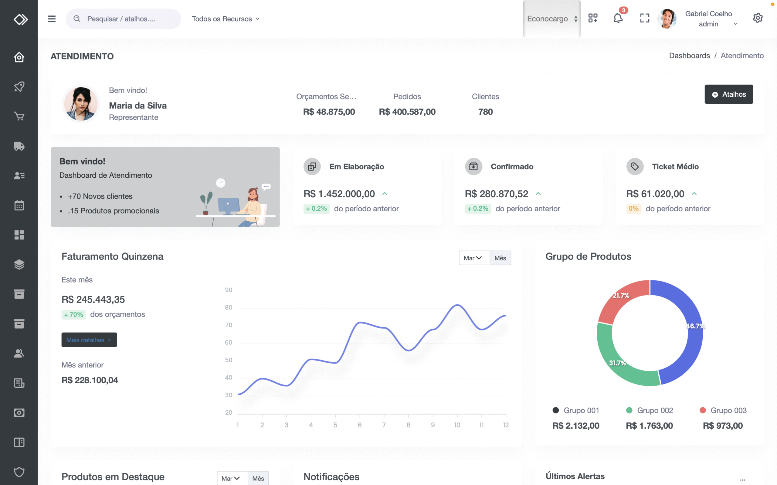 Nossa ambiente completo de ferramentas e funcionalidades para gerenciar os processos empresariais de uma organização, recursos humanos, vendas, compras, entre outros.